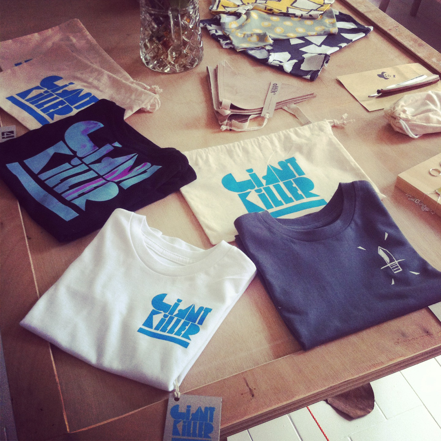 Giant Killer is a self initiated kids clothing project with an emphasis on hand screen printing. The project developed faster than expected after experimenting with building an exposure unit at home and being asked to showcase some at a local market 'The Cornerstore'.